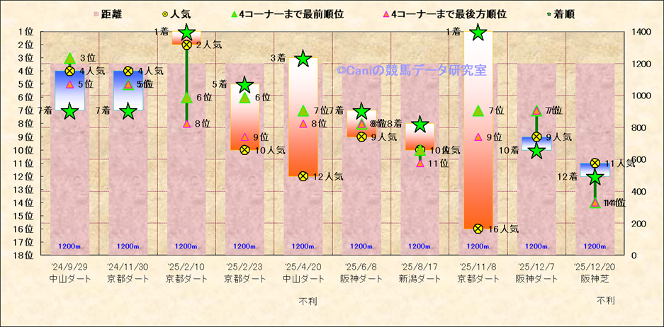 近10走 人気−着順-位置取りの推移 |
