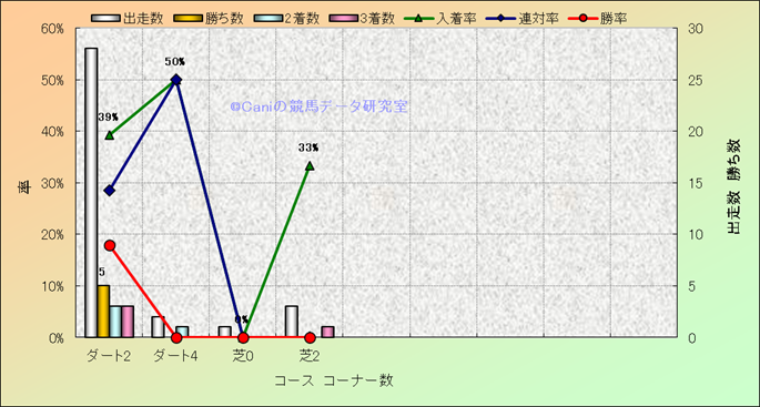 コース、コーナー数別成績(平地) |