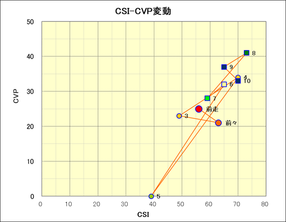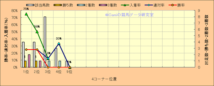 近走における4コーナーでの位置取りと上がり順位(頭数補正後) |
