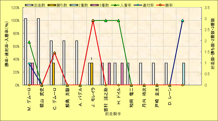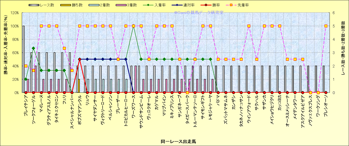 ライバル(相性)解析 同一レースに下記馬が出走した場合の成績とその馬に先着する先着率 |