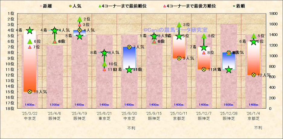 近10走 人気−着順-位置取りの推移 |