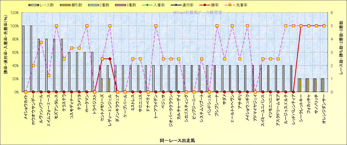 ライバル(相性)解析 同一レースに下記馬が出走した場合の成績とその馬に先着する先着率 |