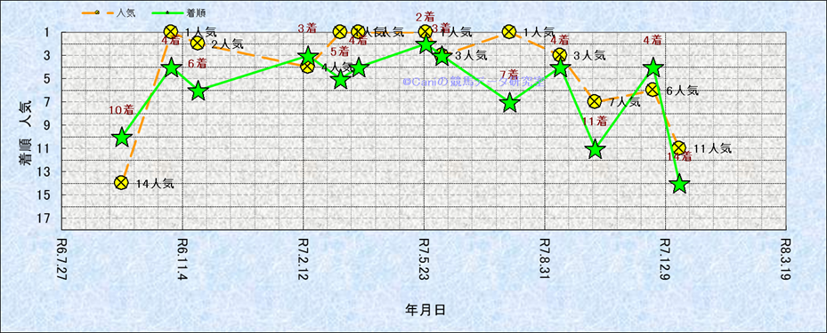 近10走 人気−着順-位置取りの推移 |