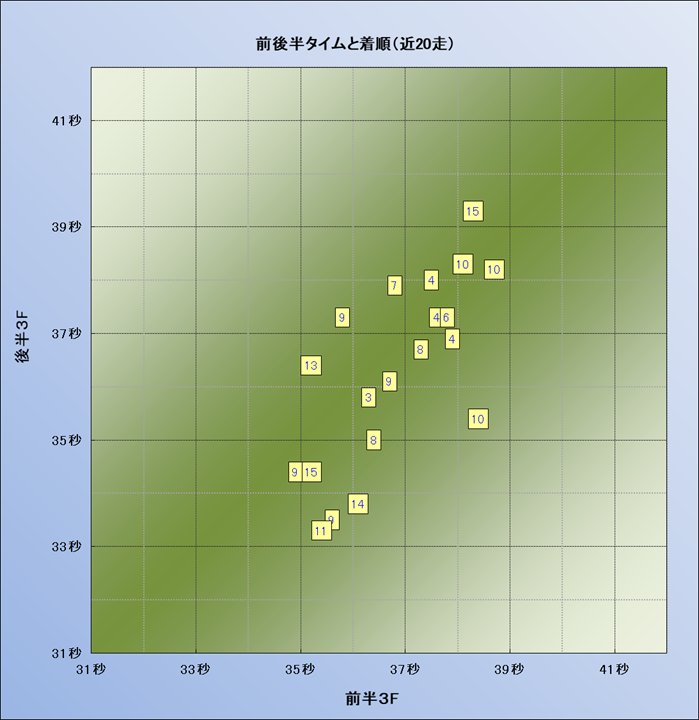 脚質解析 近20レースの4コーナーでの位置取りと上がり順位(頭数補正後) |