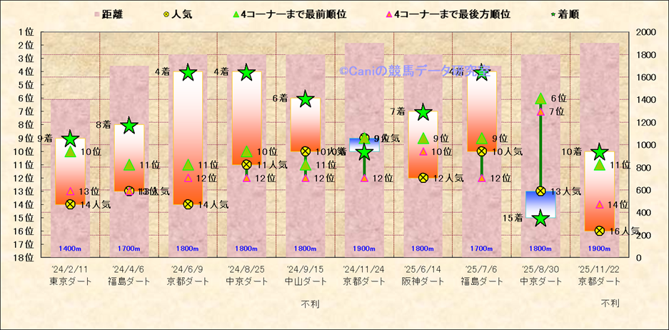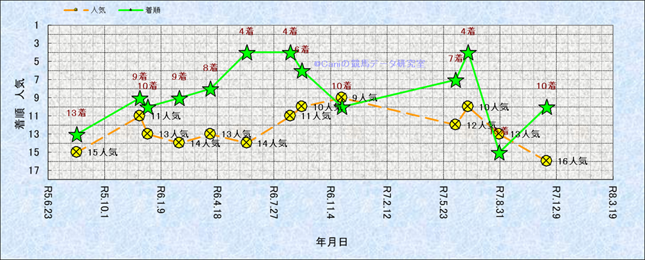 近10走 人気−着順-位置取りの推移 |