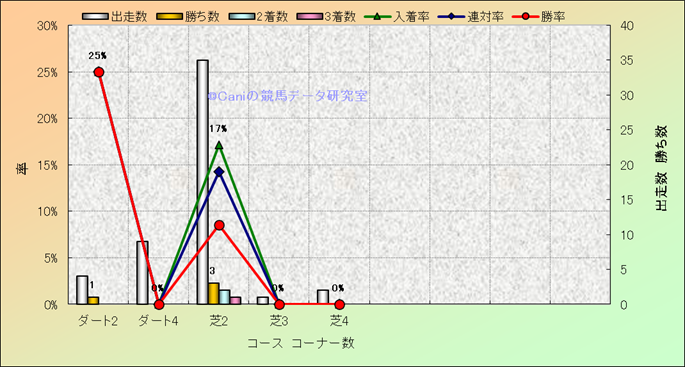 コース、コーナー数別成績(平地) |