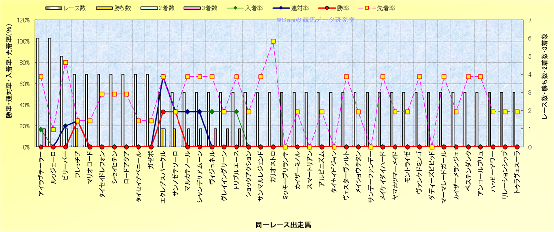 ライバル(相性)解析 同一レースに下記馬が出走した場合の成績とその馬に先着する先着率 |