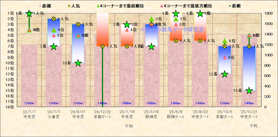 近10走 人気−着順-位置取りの推移 |