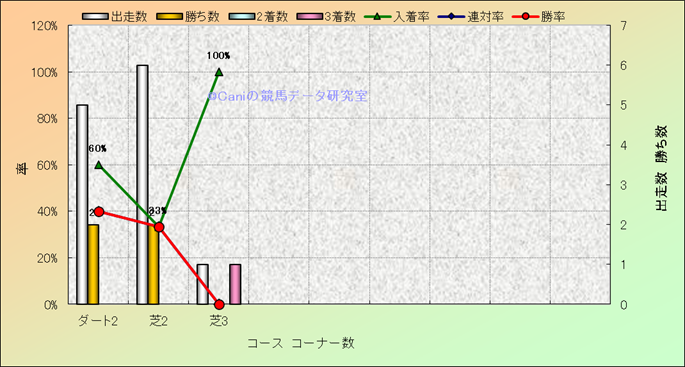 コース、コーナー数別成績(平地) |