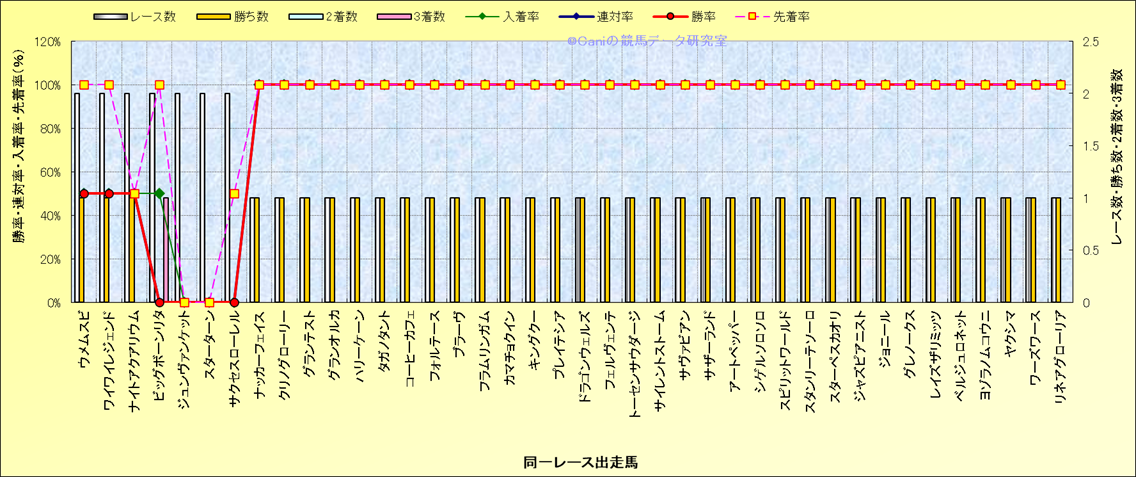 ライバル(相性)解析 同一レースに下記馬が出走した場合の成績とその馬に先着する先着率 |