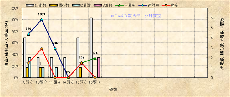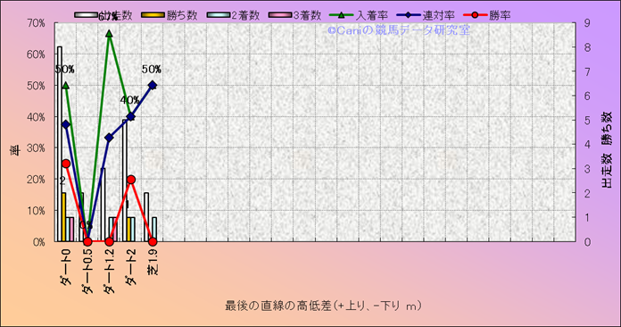 コース、最後の直線の高低差別成績(平地) |
