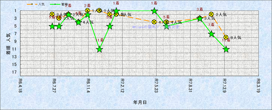 近10走 人気−着順-位置取りの推移 |