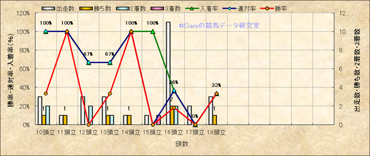 コース、最後の直線の高低差別成績(平地) |
