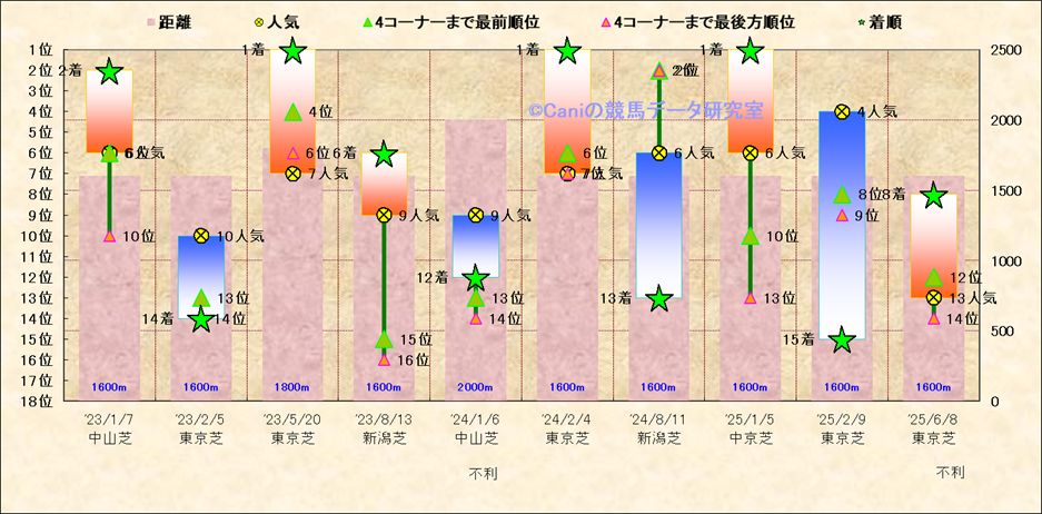 近10走 人気−着順-位置取りの推移 |