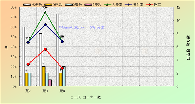 コース、コーナー数別成績(平地) |