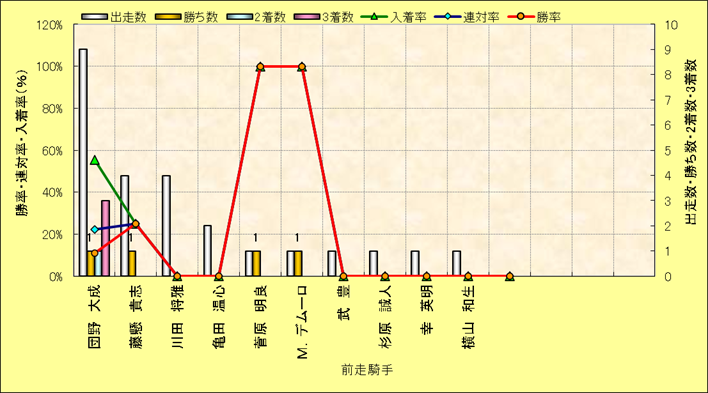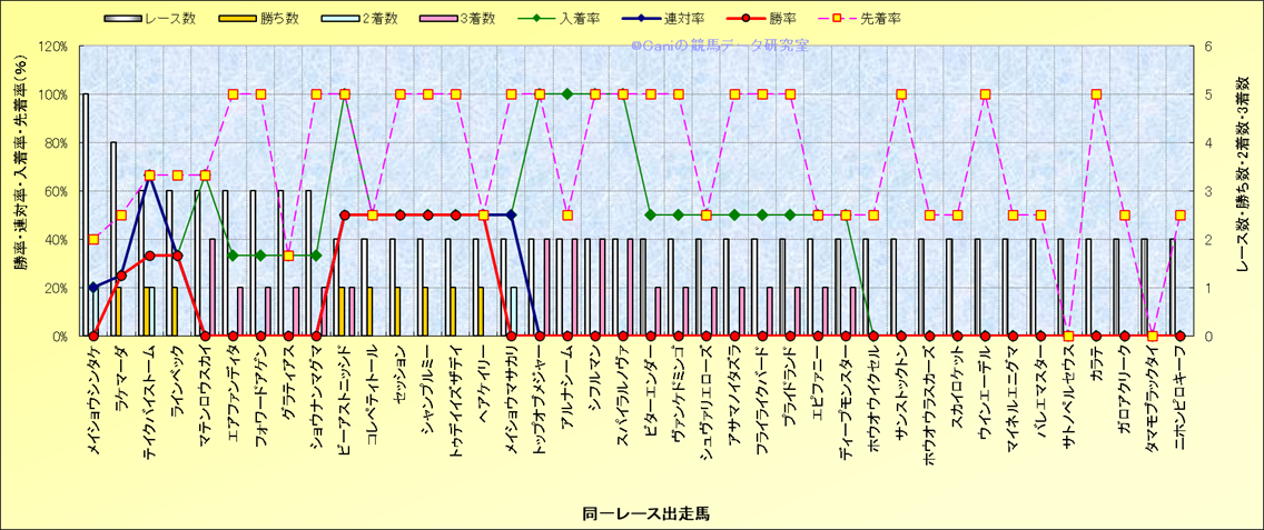 ライバル(相性)解析 同一レースに下記馬が出走した場合の成績とその馬に先着する先着率 |