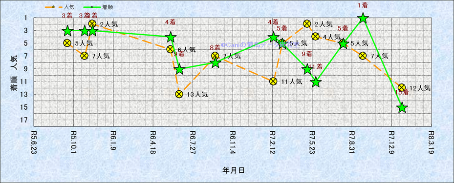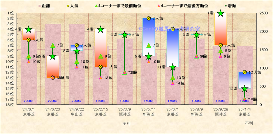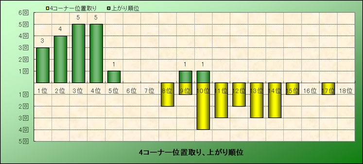 脚質解析 近20レースの4コーナーでの位置取りと上がり順位(頭数補正後) |