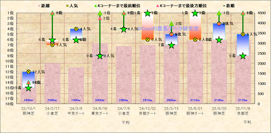 近10走 人気−着順-位置取りの推移 |