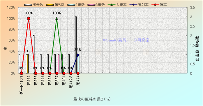 コース、最後の直線の長さ別成績(平地) |