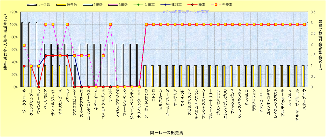 ライバル(相性)解析 同一レースに下記馬が出走した場合の成績とその馬に先着する先着率 |