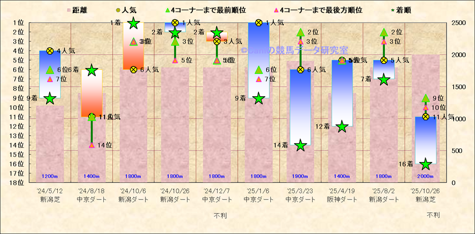 近10走 人気−着順-位置取りの推移 |