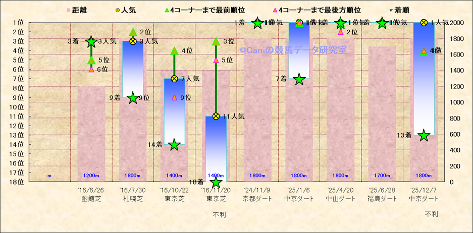 近10走 人気−着順-位置取りの推移 |