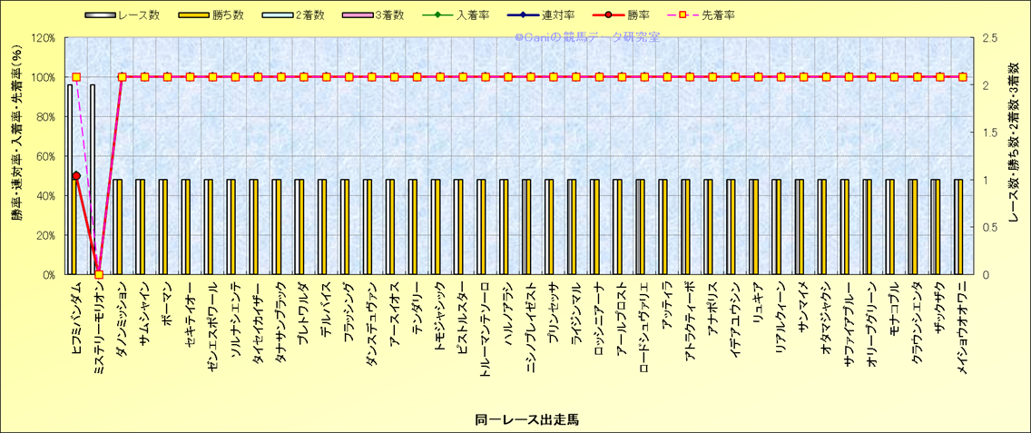 ライバル(相性)解析 同一レースに下記馬が出走した場合の成績とその馬に先着する先着率 |