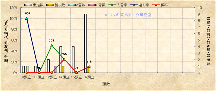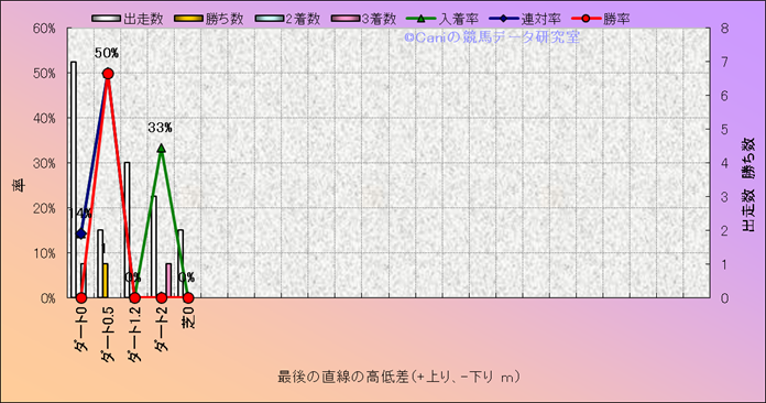 コース、最後の直線の高低差別成績(平地) |