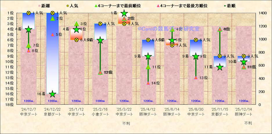 近10走 人気−着順-位置取りの推移 |