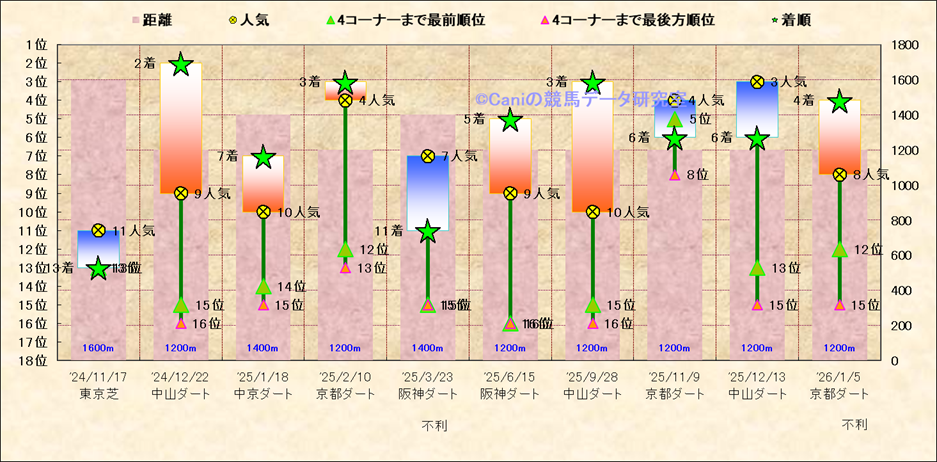近10走 人気−着順-位置取りの推移 |