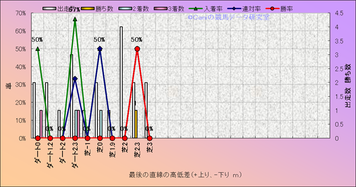 コース、最後の直線の高低差別成績(平地) |
