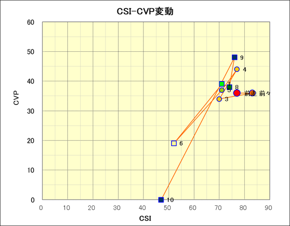 走行距離とCSI値の相関 |