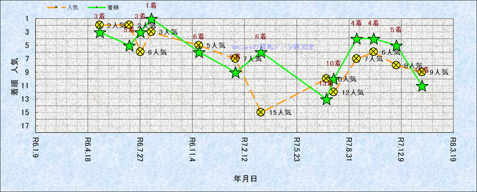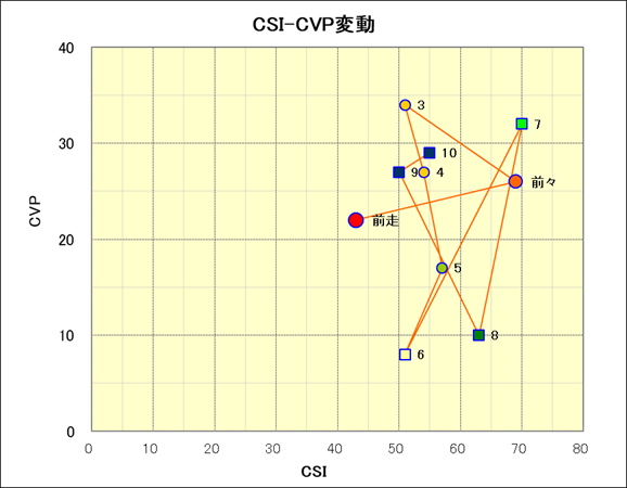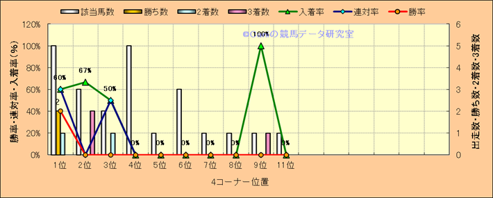 近走における4コーナーでの位置取りと上がり順位(頭数補正後) |