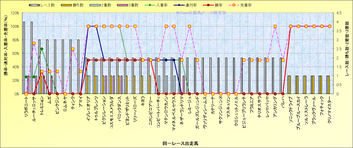 ライバル(相性)解析 同一レースに下記馬が出走した場合の成績とその馬に先着する先着率 |