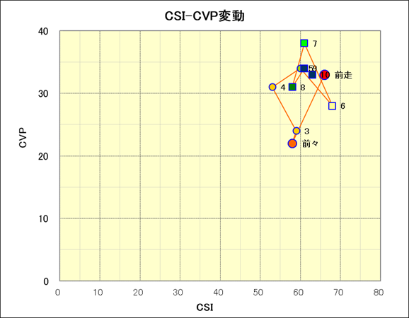 近走における4コーナーでの位置取りと上がり順位(頭数補正後) |