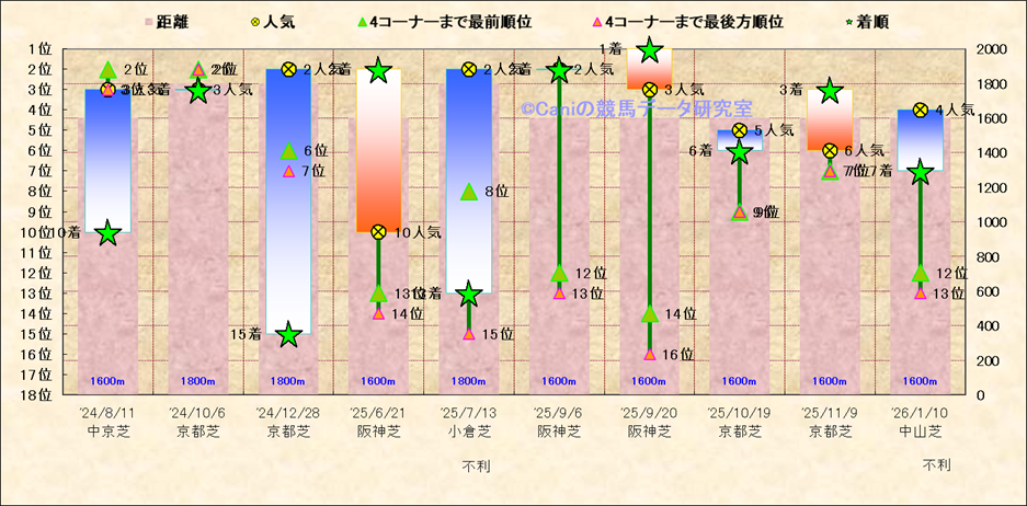 近10走 人気−着順-位置取りの推移 |