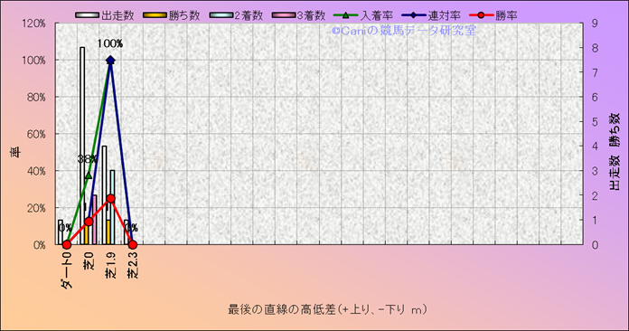 コース、最後の直線の高低差別成績(平地) |