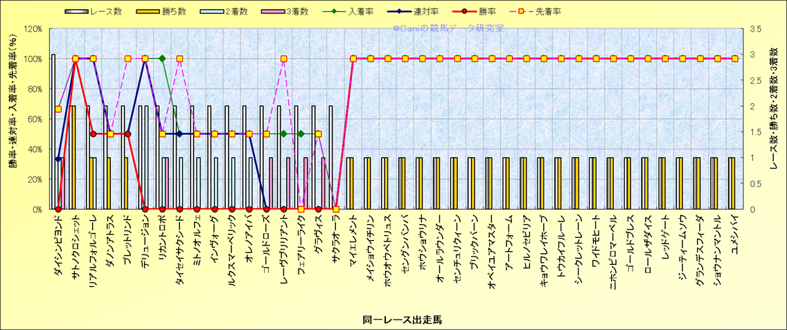 ライバル(相性)解析 同一レースに下記馬が出走した場合の成績とその馬に先着する先着率 |