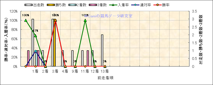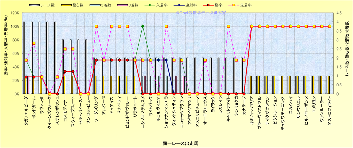 ライバル(相性)解析 同一レースに下記馬が出走した場合の成績とその馬に先着する先着率 |