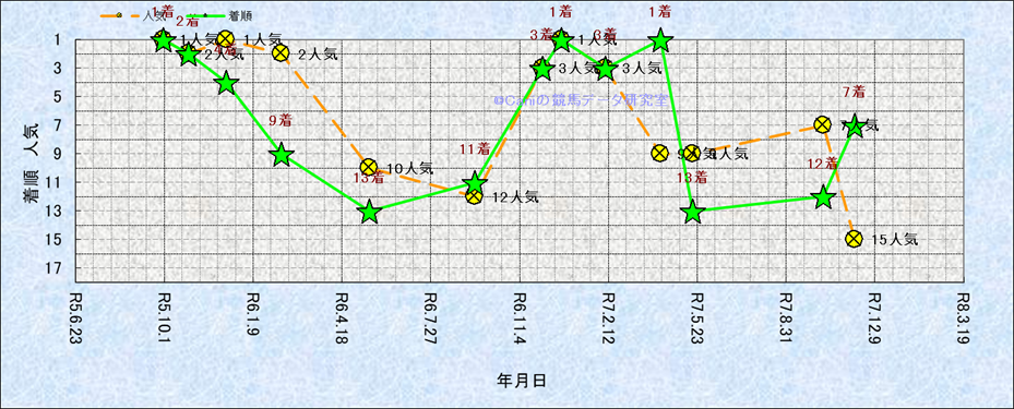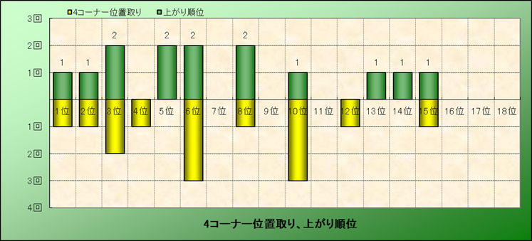 脚質解析 近20レースの4コーナーでの位置取りと上がり順位(頭数補正後) |