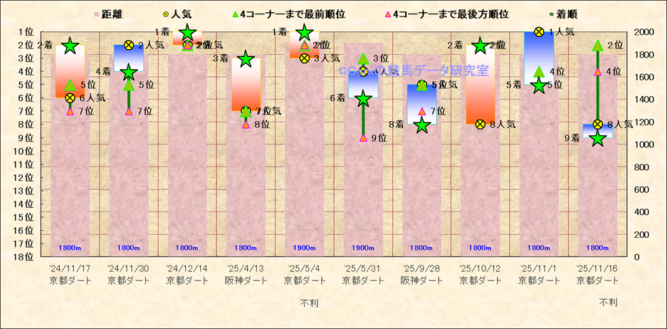 近10走 人気−着順-位置取りの推移 |