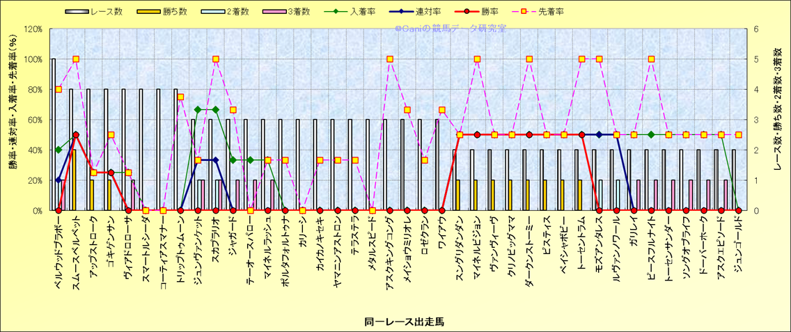 ライバル(相性)解析 同一レースに下記馬が出走した場合の成績とその馬に先着する先着率 |