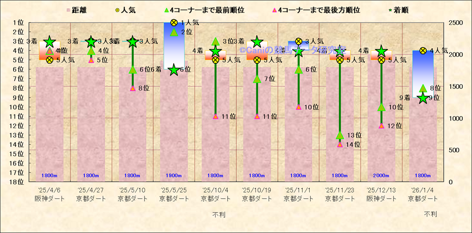近10走 人気−着順-位置取りの推移 |