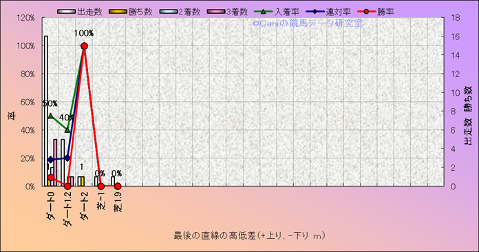 コース、最後の直線の高低差別成績(平地) |
