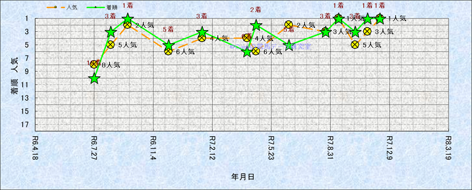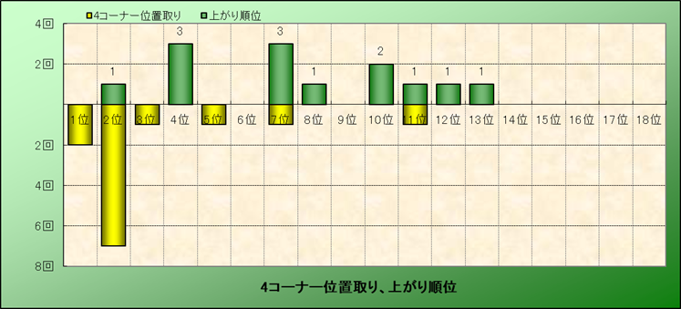 脚質解析 近20レースの4コーナーでの位置取りと上がり順位(頭数補正後) |