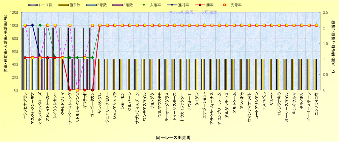 ライバル(相性)解析 同一レースに下記馬が出走した場合の成績とその馬に先着する先着率 |