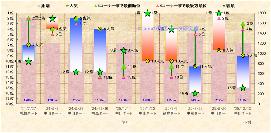 近10走 人気−着順-位置取りの推移 |
