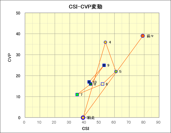 走行距離とCSI値の相関 |
