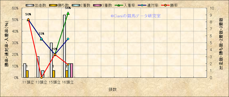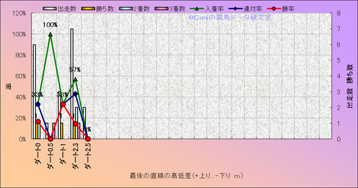 コース、最後の直線の高低差別成績(平地) |