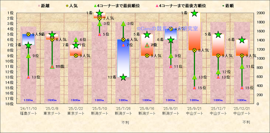 近10走 人気−着順-位置取りの推移 |